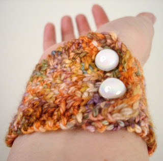 Krishell of Blue Starr Butterflies! Krishell is a very talented fiber artist, with beautiful crocheted cowls, scarves and other accessories in her Etsy and Artfire shops. I hope you'll visit her shop(s)! She selected an already knit wrist cuff, Spring Garden (which happens to be my own favorite!).
